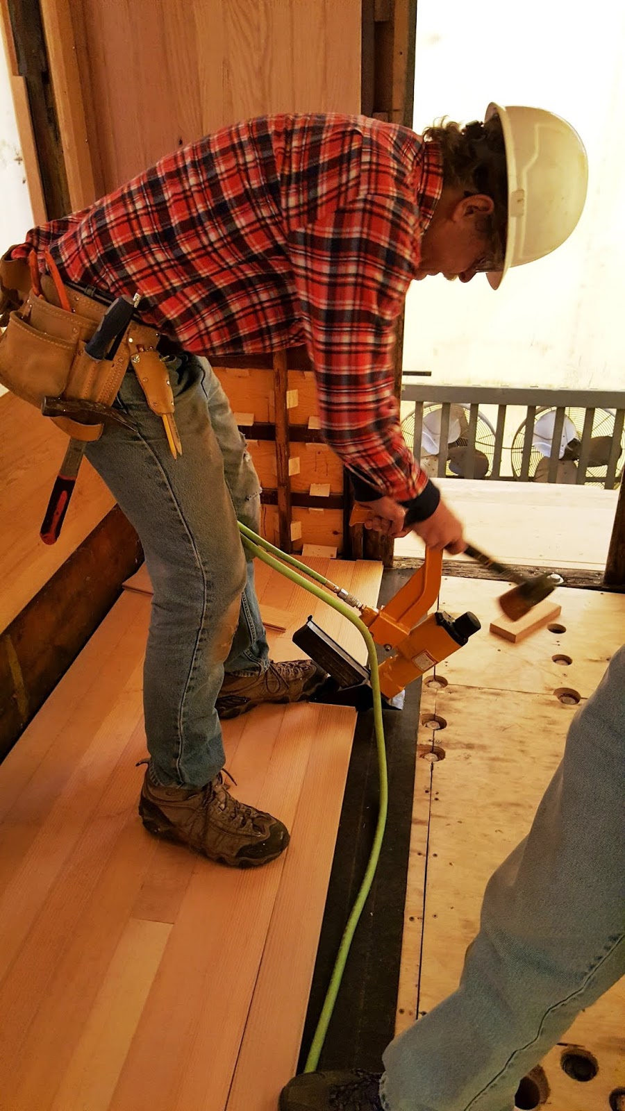 After the first row was installed the subsequent rows were nailed in place with a flooring nailer.